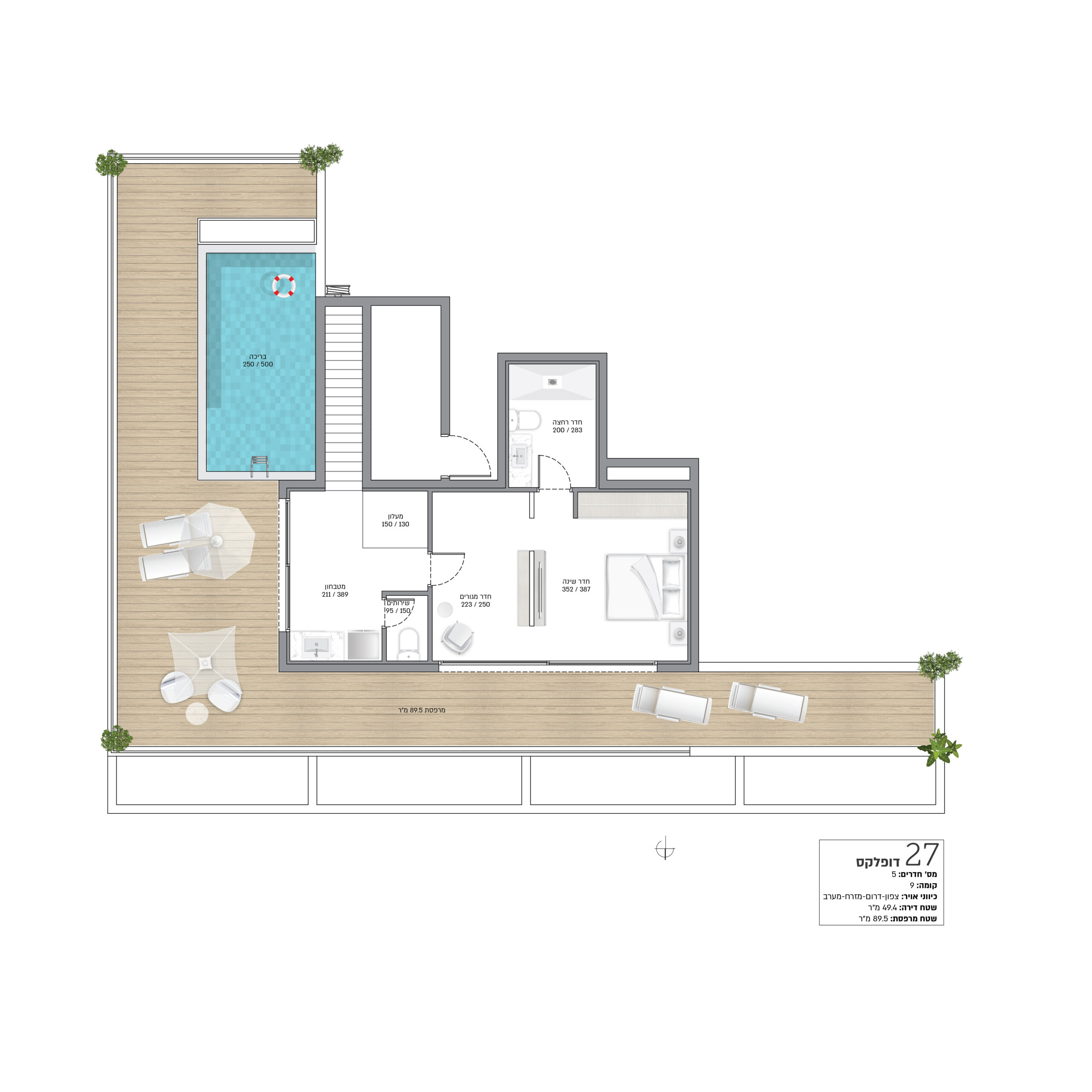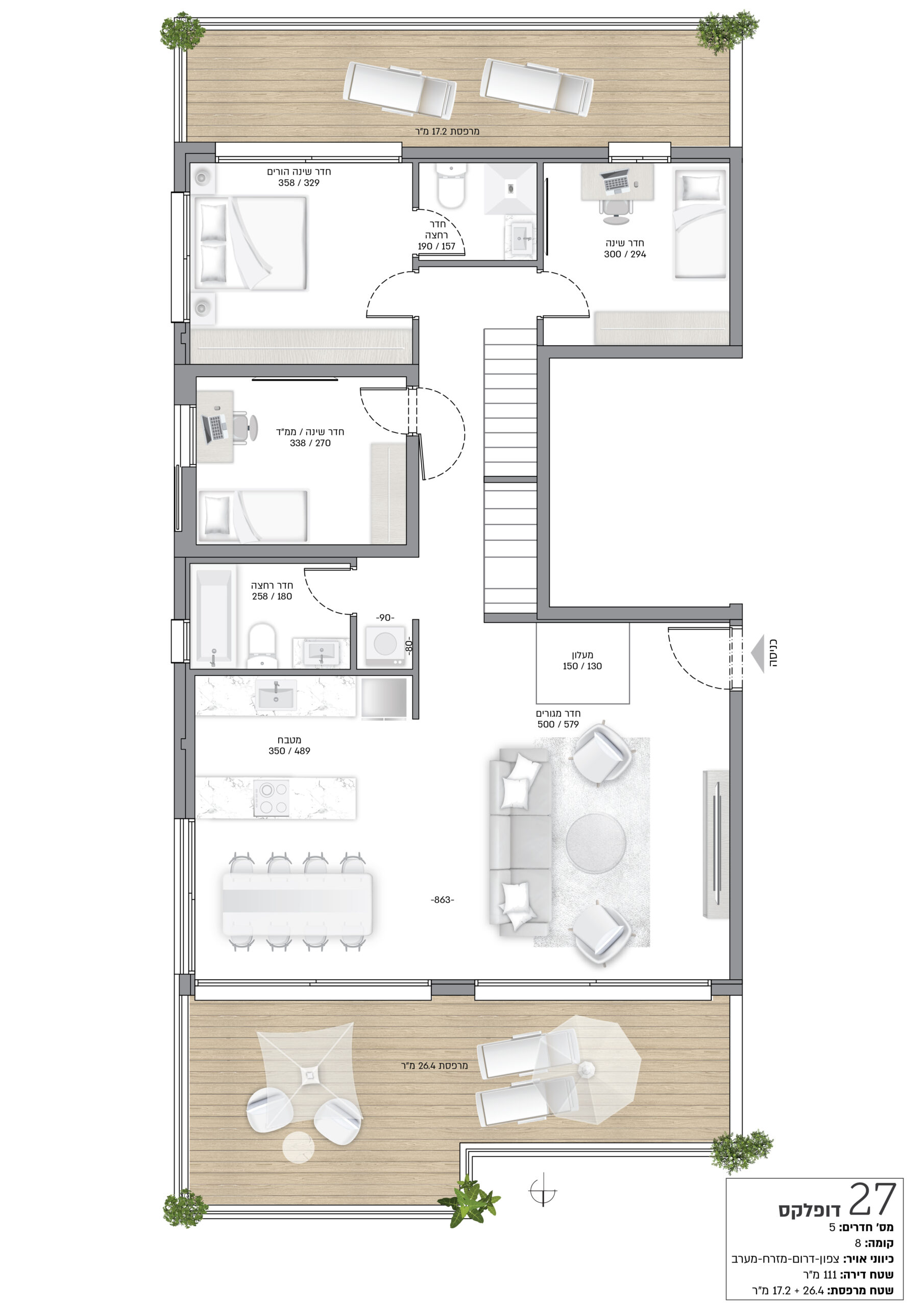 | 8 | דופלקס | 5 | 111 מ"ר | 26 + 172 מ"ר | לצפייה |