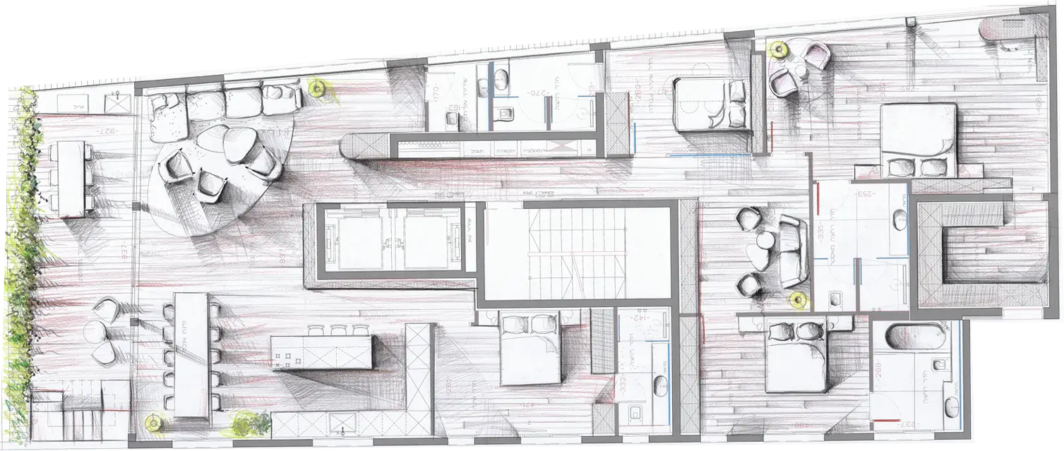 קומה: 8-7 | מספר חדרים: 6 | שטח דירה: 229.8 מ”ר | שטח מרפסות: 48.3 + 26 + 17.2 מ”ר
